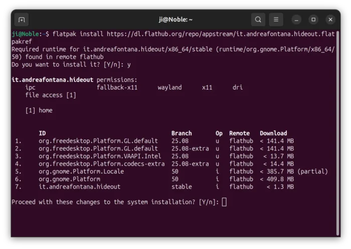 - Then, install the Hideout flatpak package: