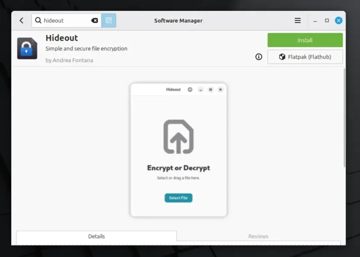 flatpak install https://dl.flathub.org/repo/appstream/it.andreafontana.hideout.flatpakref