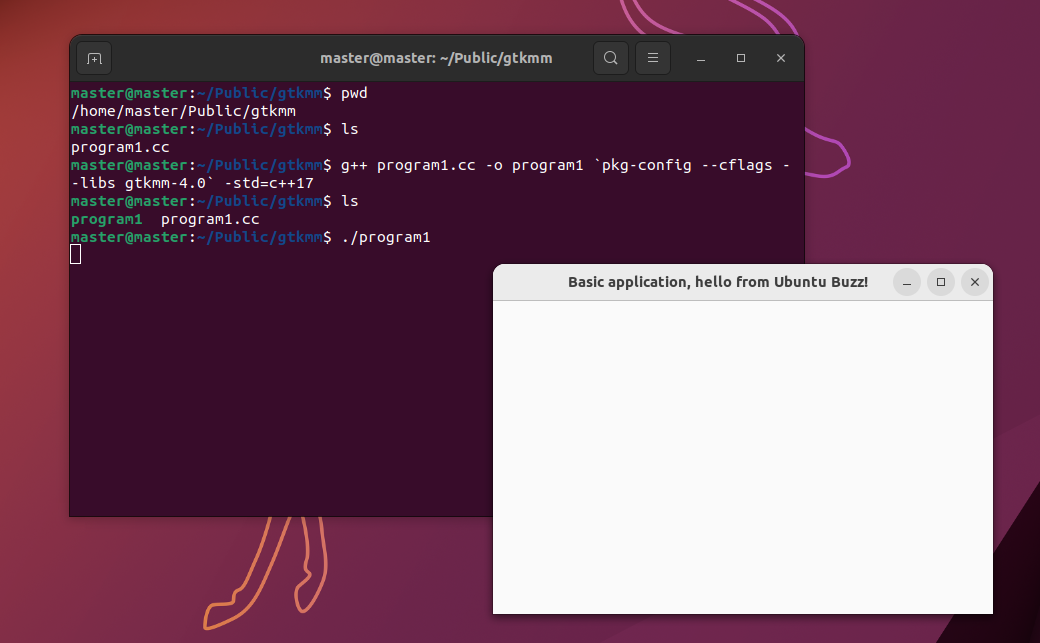 $ g++ program1.cc -o program1 `pkg-config --cflags --libs gtkmm-4.0` -std=c++17