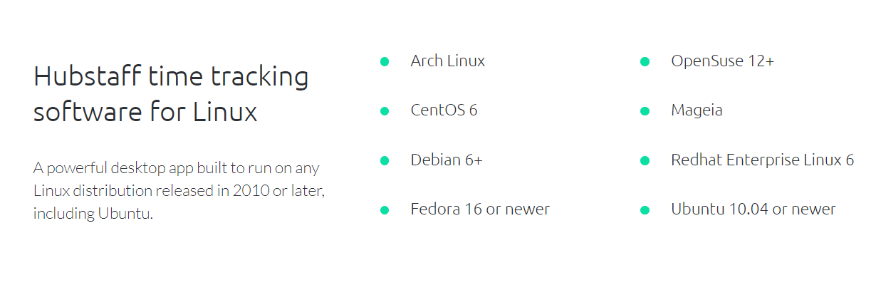 The reason why Hubstaff beats many other Linux time tracking applications is the fact that it works across different operating systems and also as a web application. This makes it possible for bigger teams with different setups and functions to adopt one time tracking tool. Hubstaff has a Linux time tracking desktop app that works on all major Linux distributions.