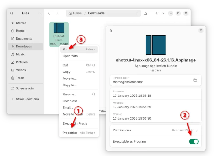 Tips: Ubuntu 22.04+ needs to run sudo apt install libfuse2 to install the required library first.