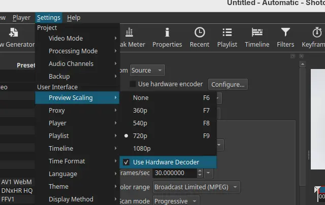 Shotcut 26.1 Beta added Hardware Decoding for Preview Scaling & Export