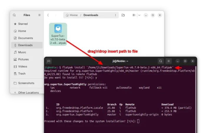 flatpak install drag-and-drop-flatpak-package-into-terminal