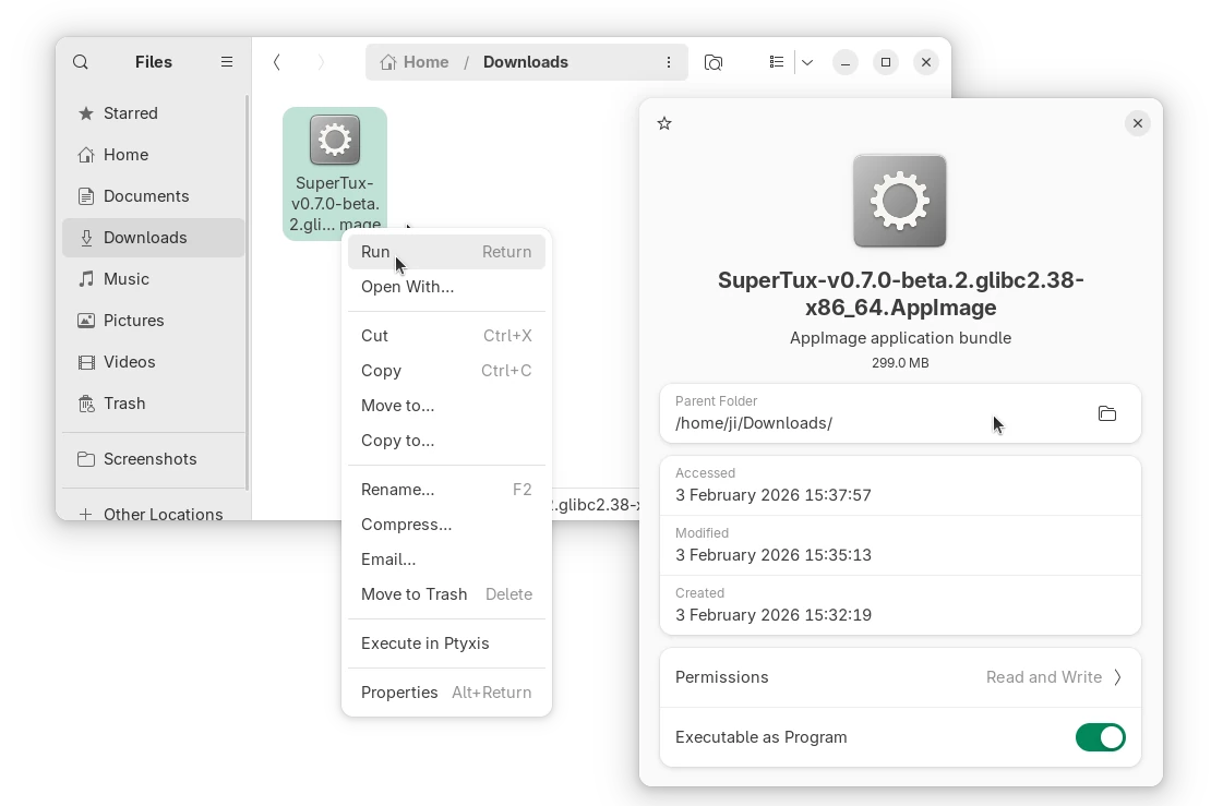 Linux user on AMD/Intel platform may select download the AppImage package, add executable permission, and run to launch the game.